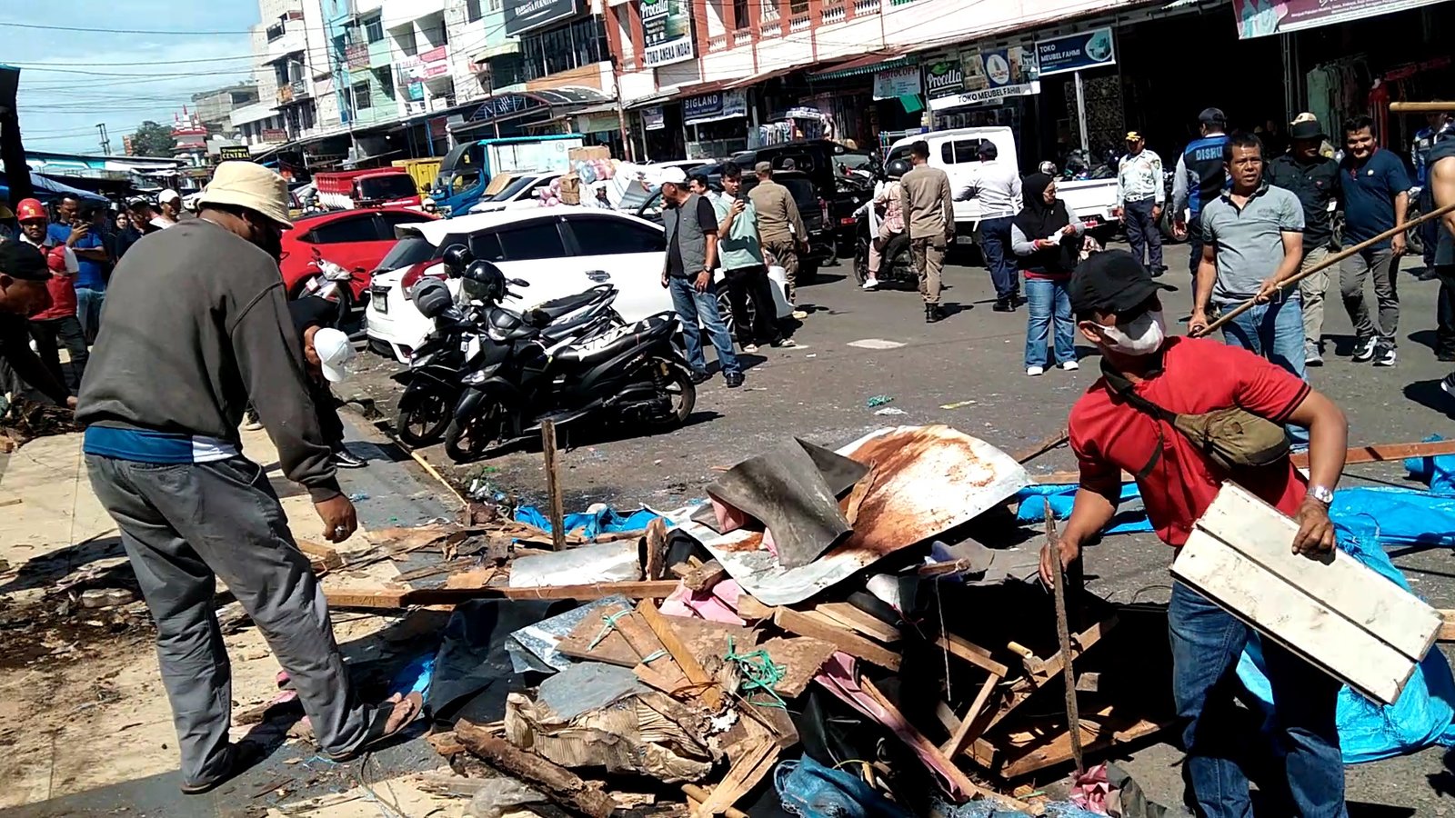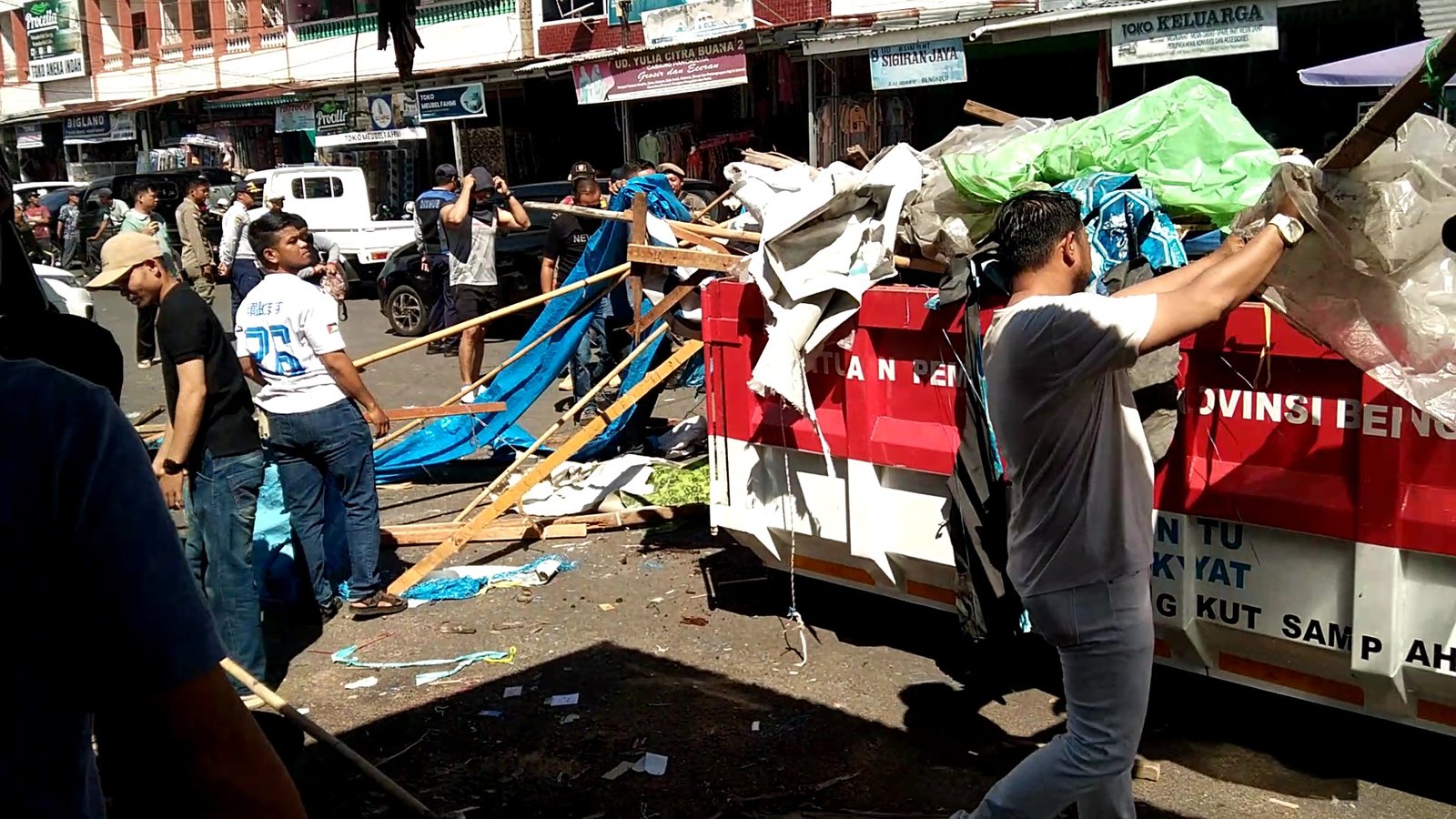 “Kita hanya membantu pedagang membersihkan lapak yang mereka bongkar,” ujar Dedy Wahyudi kwtija ditemui dilokasi jalan kaz Abidin 1.