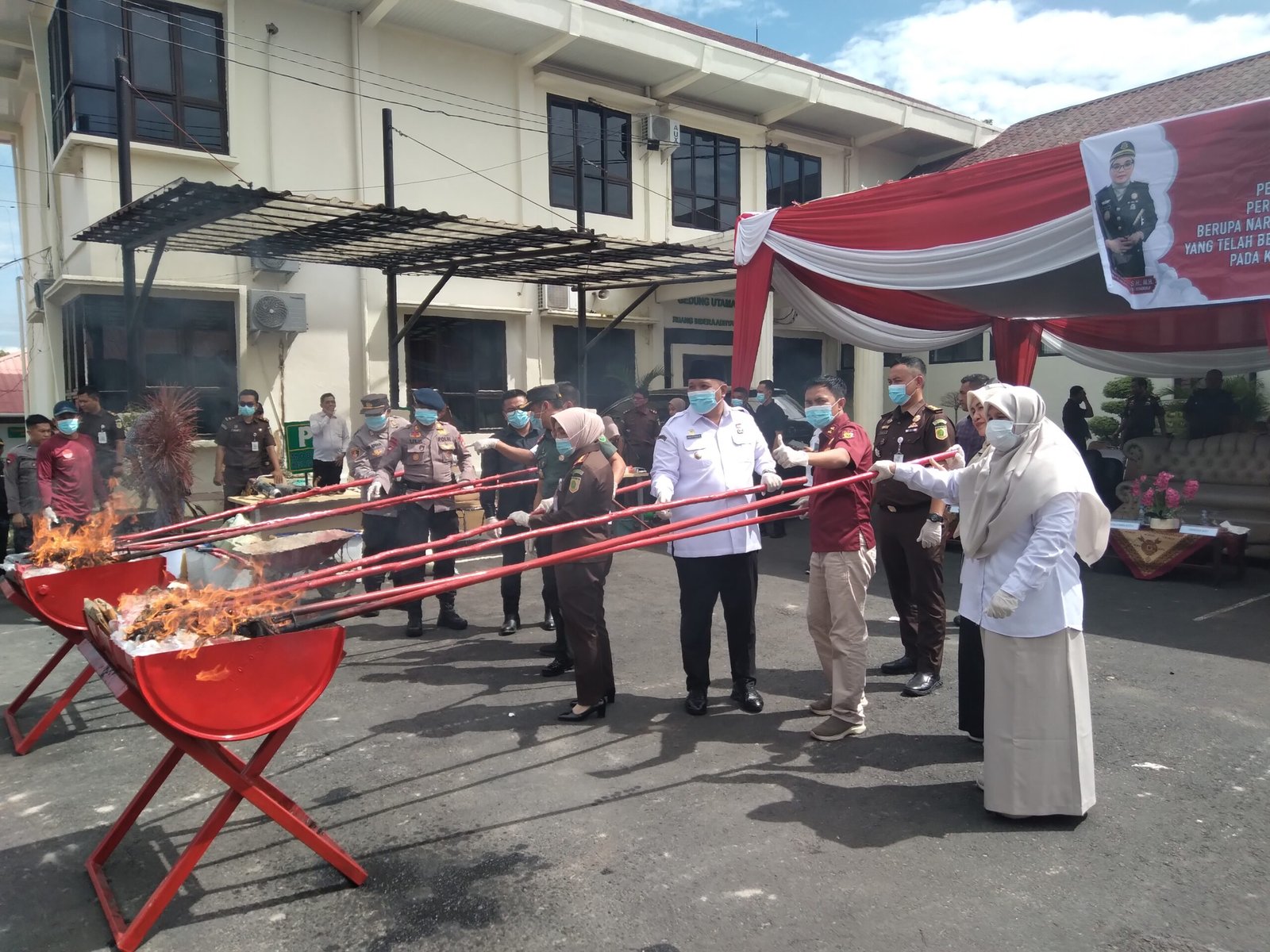 Pemusmahan barang bukti dikejaksaan Negeri Bengkulu dihadiri Dandim 0407 Kota Benglulu,Kapolresta,kepala BNN. (Her)
